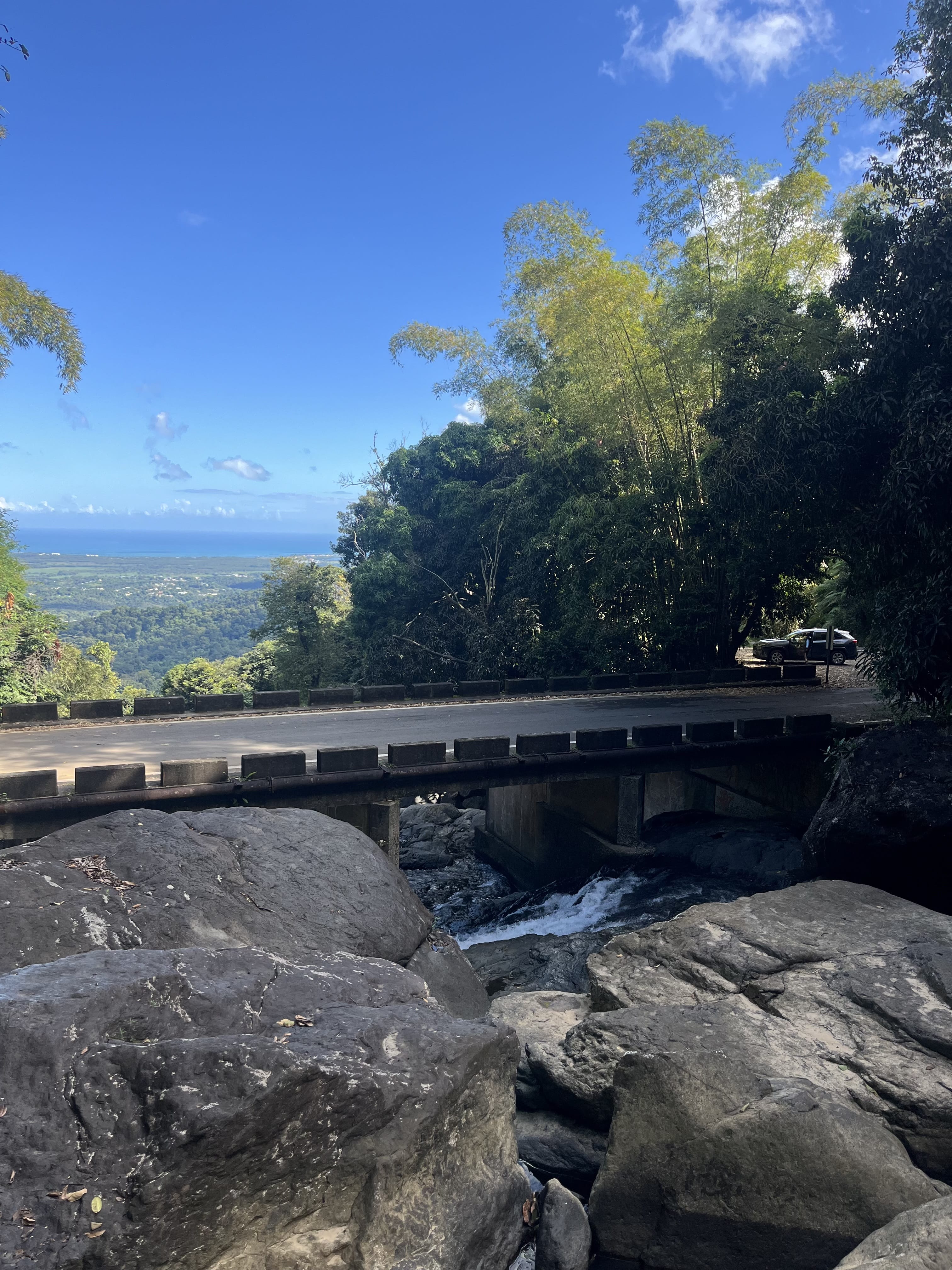Your journey begins with a scenic drive into the mountains along Route 186, known for its dense rainforest views and winding roads. Along the way, enjoy panoramic viewpoints overlooking the coastline before arriving at Quebrada Sonadora, a local favorite tucked within the rainforest.